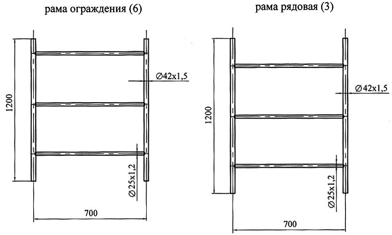5. Уложить на нижние перекладины рам ограждения настил (10).